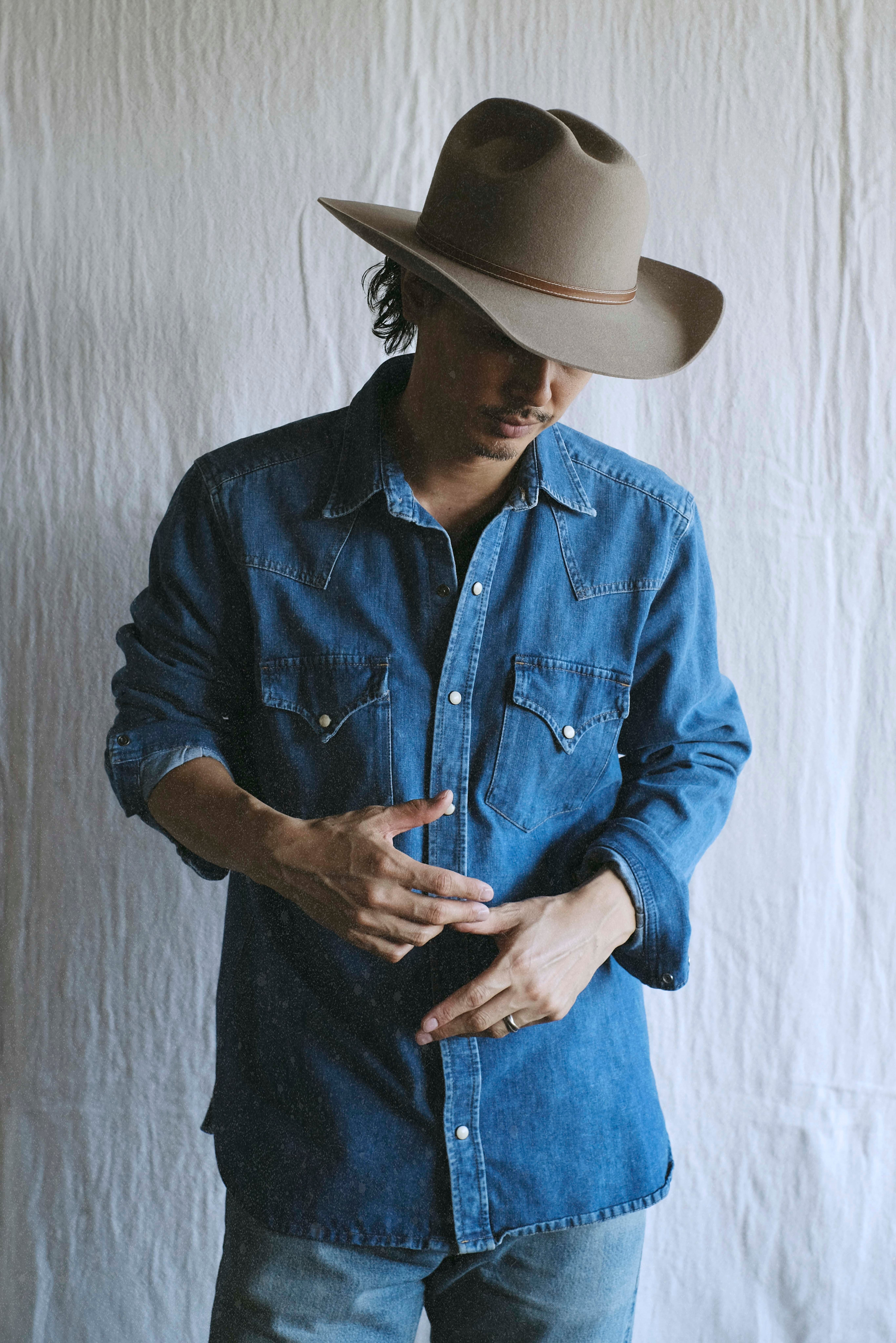 アーバンライクなカウボーイスタイルのハット。