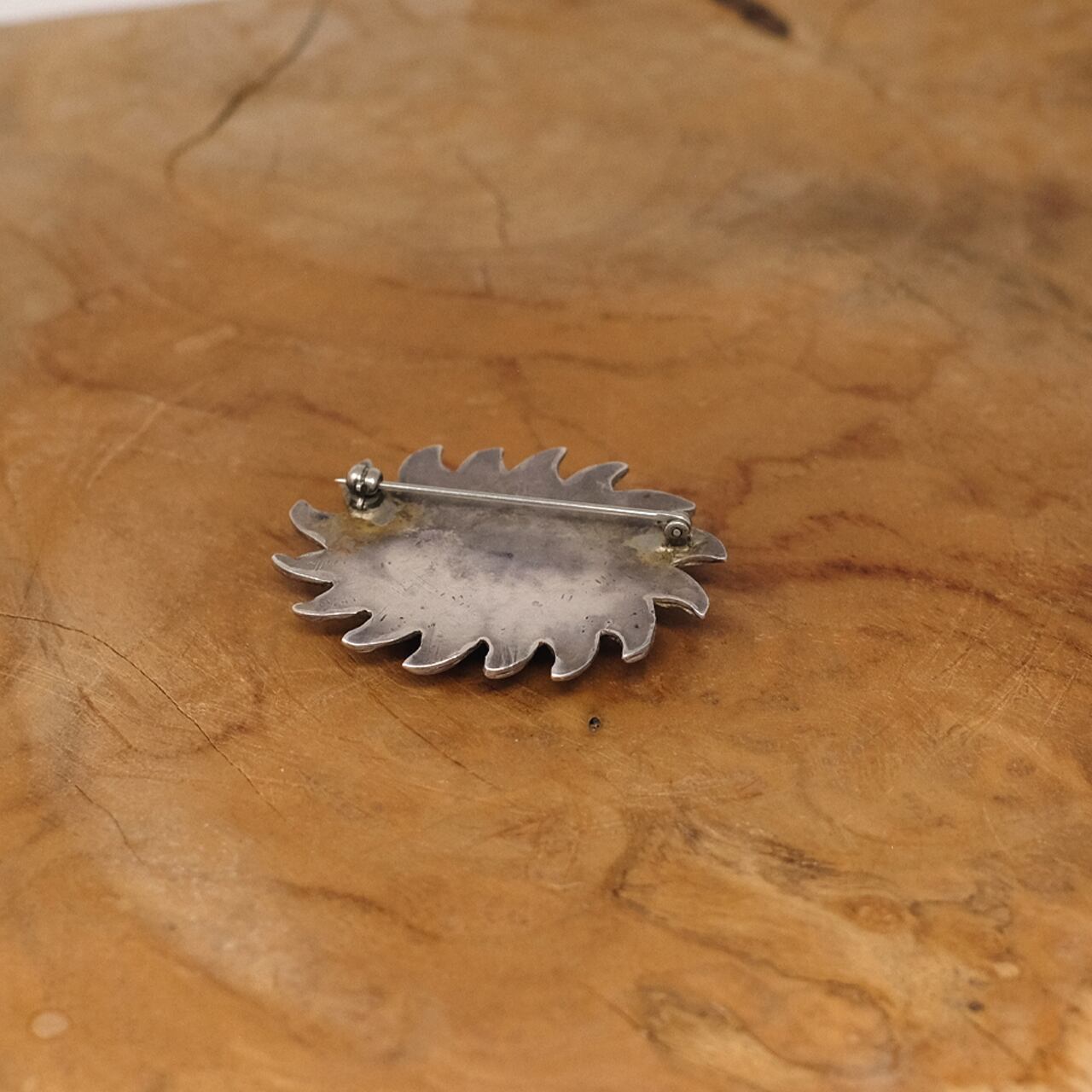 ナバホ族の銀細工アーティストによる太陽をモチーフにしたピンブローチです。